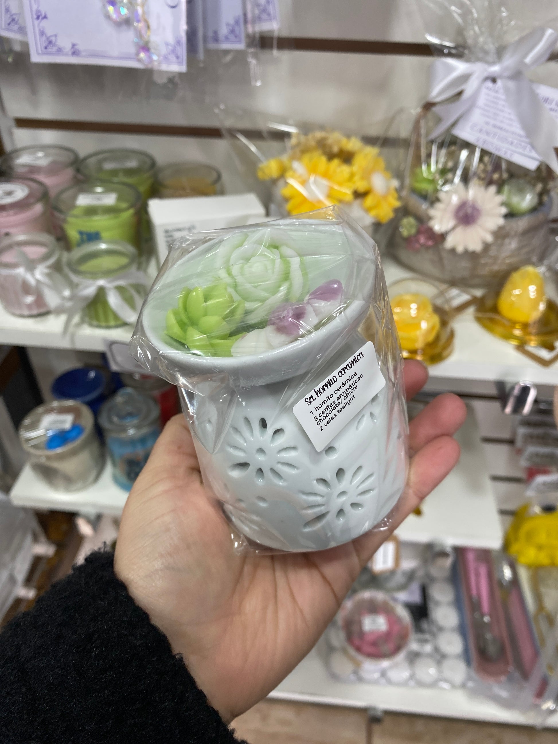 Hornito difusor del ceramica con tres Wax melts de cera de soya y dos velitas tealigth